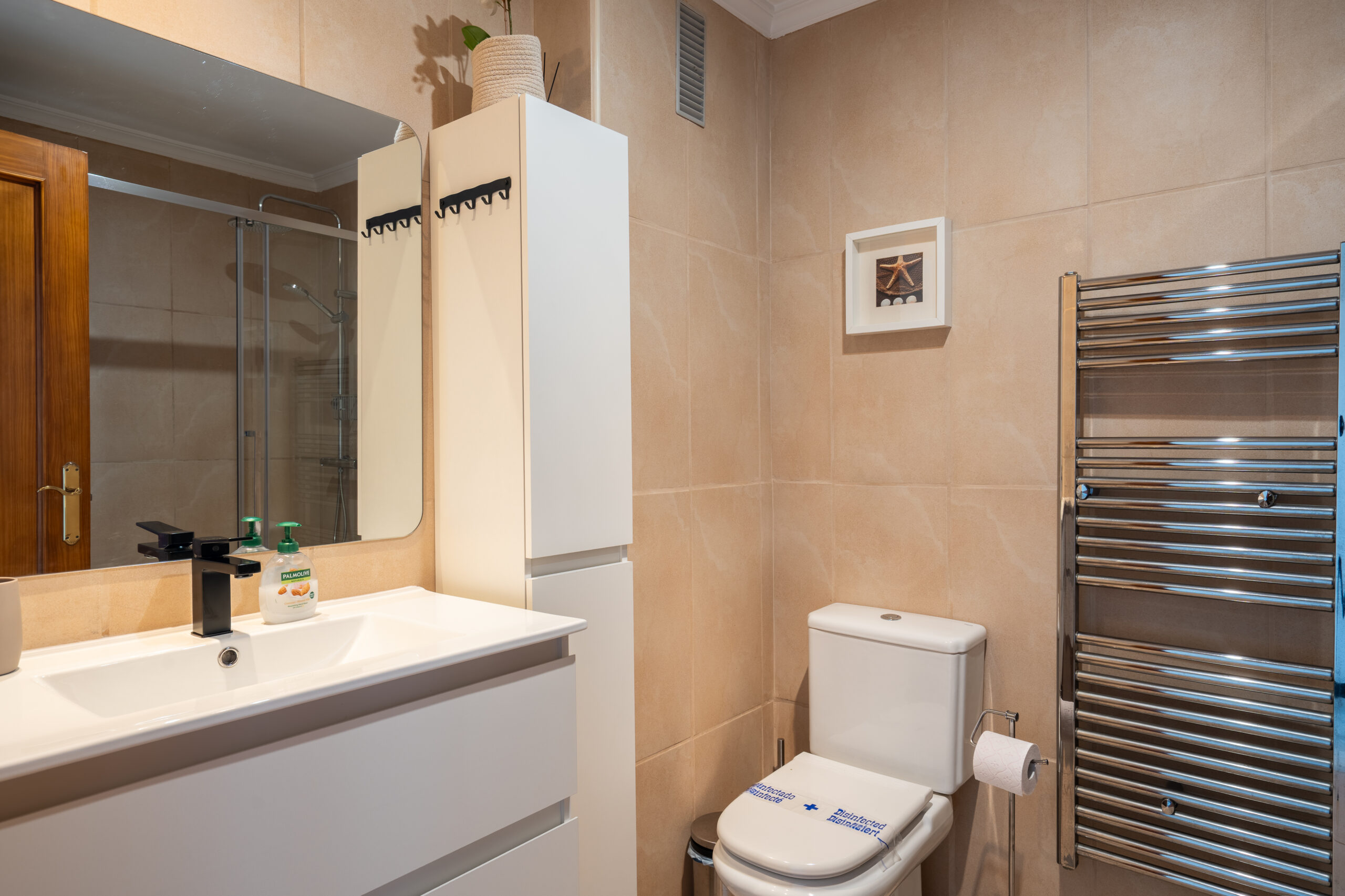 - Spa Bathroom: A sleek, renovated bathroom with a large walk-in rainfall shower and premium matte-black finishes.