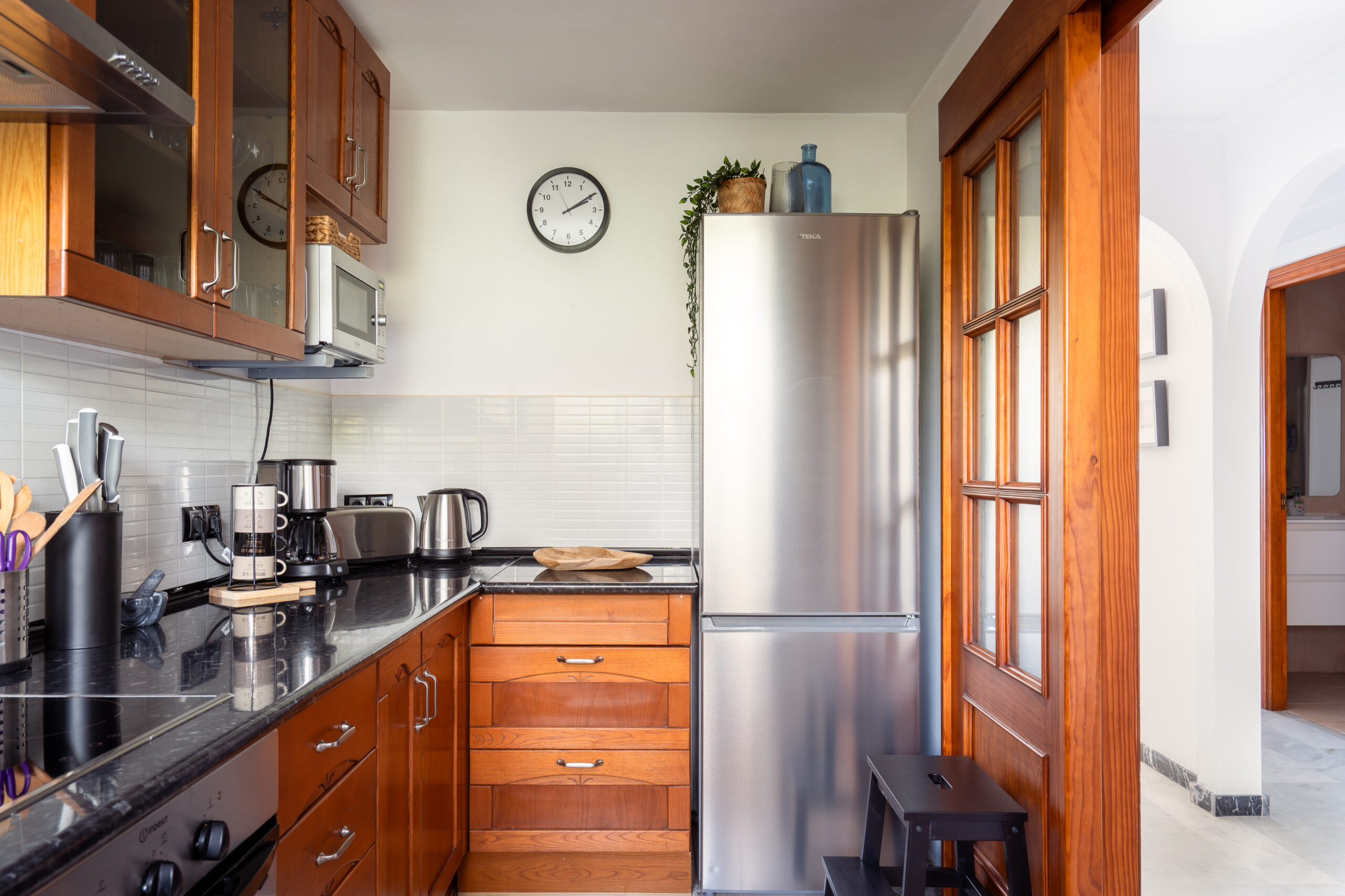 - Chef’s Kitchen: A bright, modern space equipped with everything you need: a full-sized fridge, oven, microwave, integrated dishwasher, and a dedicated coffee station to start your mornings right.